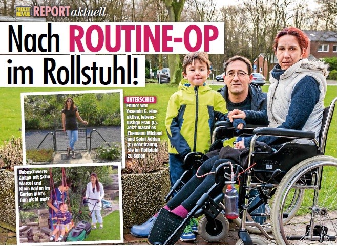 Es sollte doch nur ein kleiner Eingriff werden... Jetzt sitzt Yasemin G. (35) aus Duisburg (NRW) im Rollstuhl. Und das alles nur, weil ein Arzt geschlampt hat!