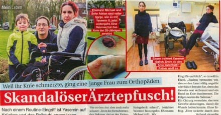Weil ihr Knie schmerzte, ging eine junge Frau zum Orthopäden - Nach einem Routine-Eingriff ist Yasemin auf Krücken und den Rollstuhl angewiesen